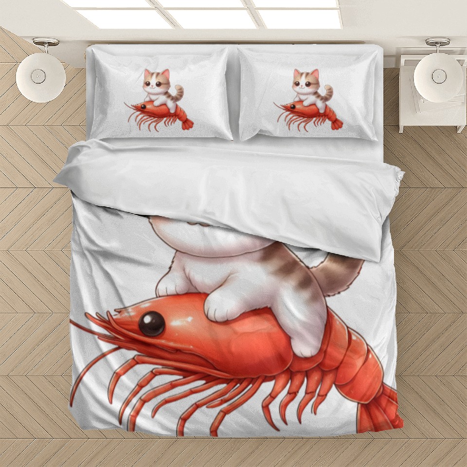 You are contemplating one of the best-selling products Cat rides on shrimp Bedding Sets For WHITE belong theme Bedding Sets at Printblur