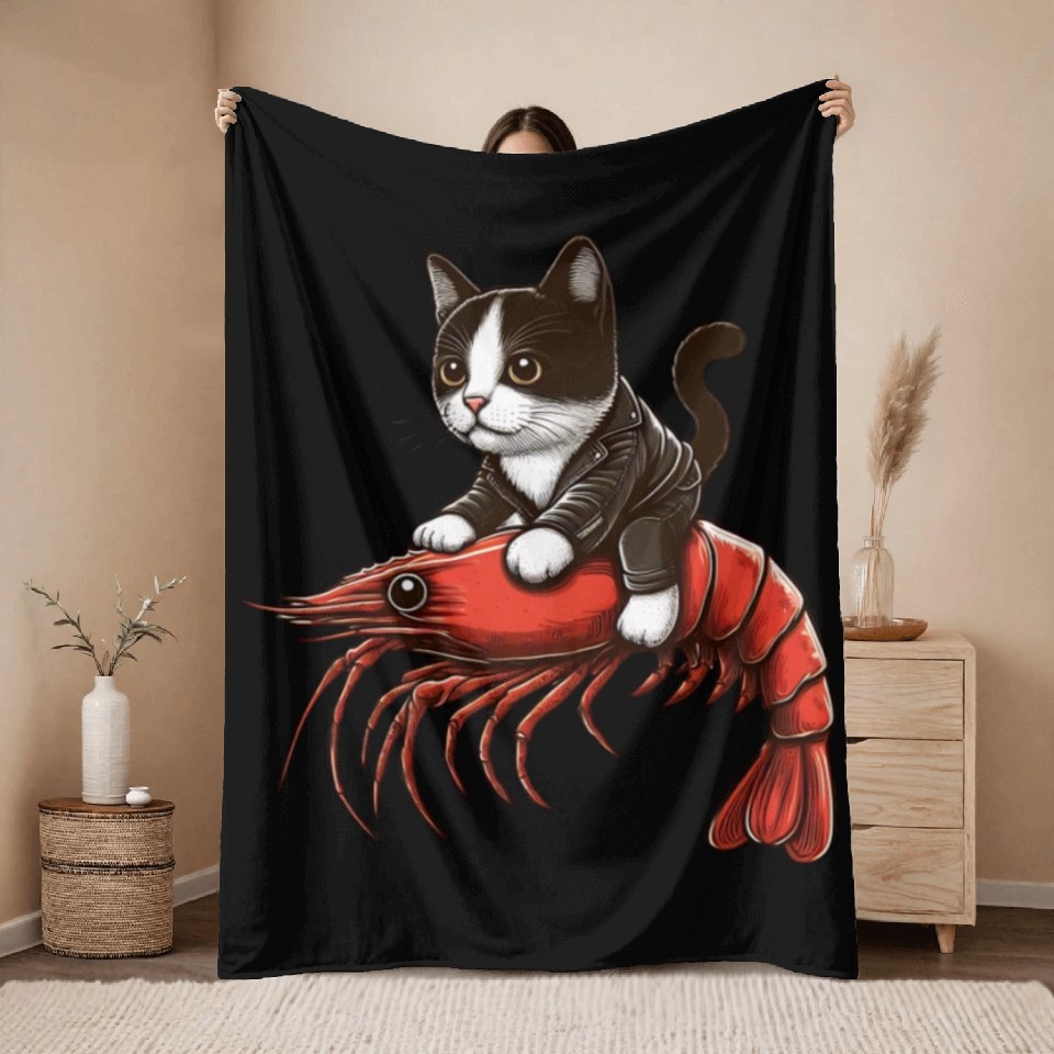 Shop for attractive Cat rides shrimp Throw Blankets or see more Throw Blankets products on https://printblur.com right now!