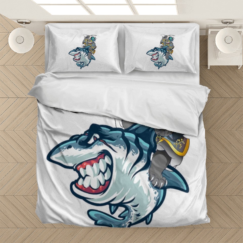 Own fascinating Cat Samurai Riding On Shark Bedding Sets or see more Bedding Sets products now from Printblur shop to enjoy your shopping time!