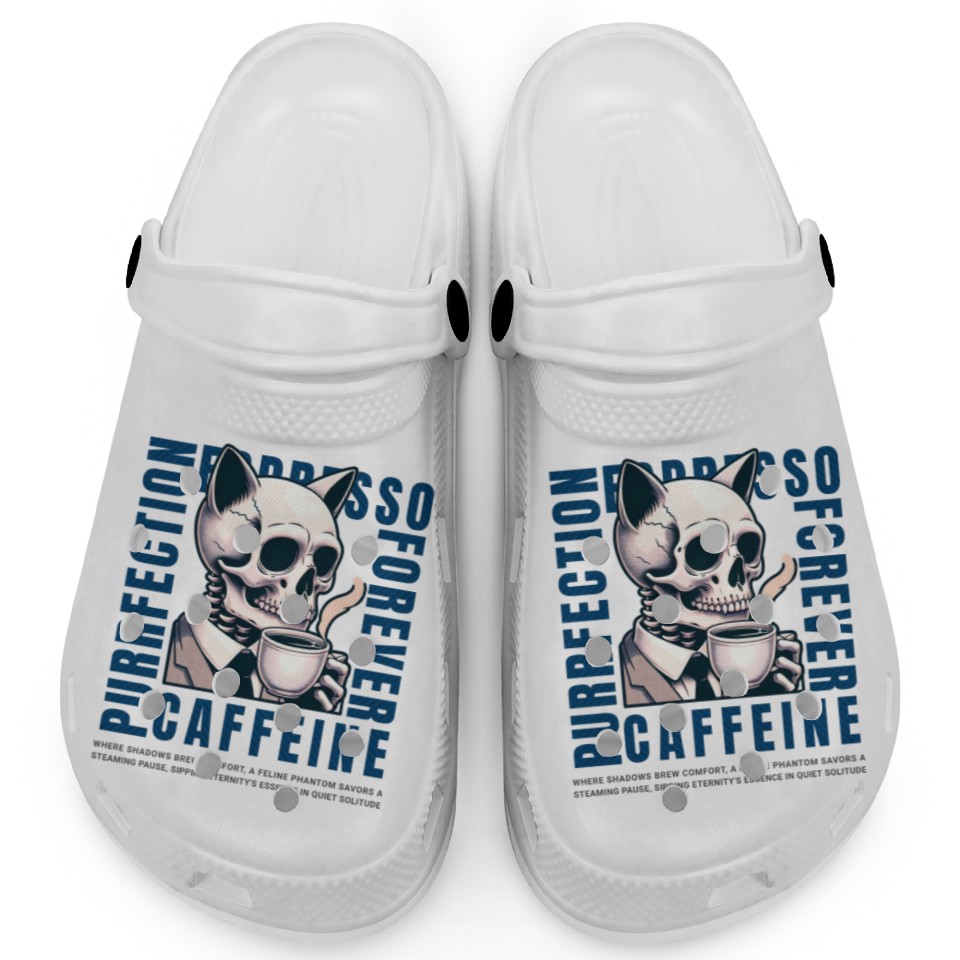 You are viewing one of the trendiest products Cat Skull Caffeine Connoisseur - Eternal Coffee Clogs For Kids WHITE belong theme Clogs at Printblur