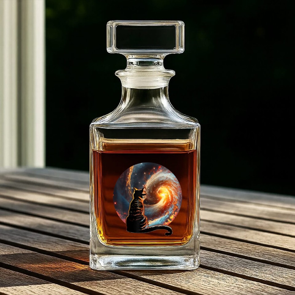 You're searching for a one-of-a-kind product Cat Staring at a Galaxy Cat Dad Cat Lover Whiskey Decanters For belong theme Whiskey Decanters at Printblur