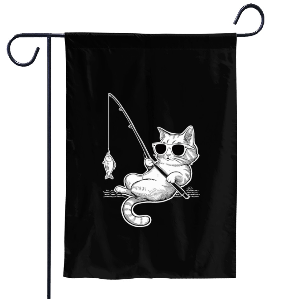 Buy eye-catching Cat Wearing Sunglasses Fishing with a Fish Garden Flags or see more Garden Flags products at Printblur shop now to explore many surprises from our shop!