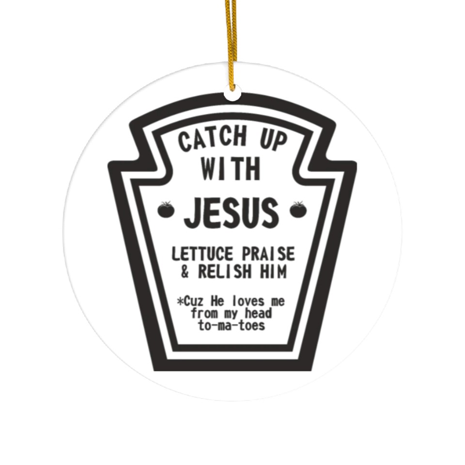 You are viewing an exclusive and elegant product Catch up With Jesus, Funny Christian Ceramic Ornaments For WHITE belong theme Ceramic Ornaments at Printblur