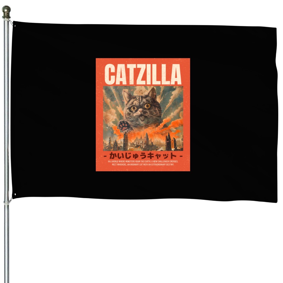 You're searching for a one-of-a-kind product Catzilla Vintage Japanese Funny Angry Cat House Flags For Black belong theme House Flags at Printblur