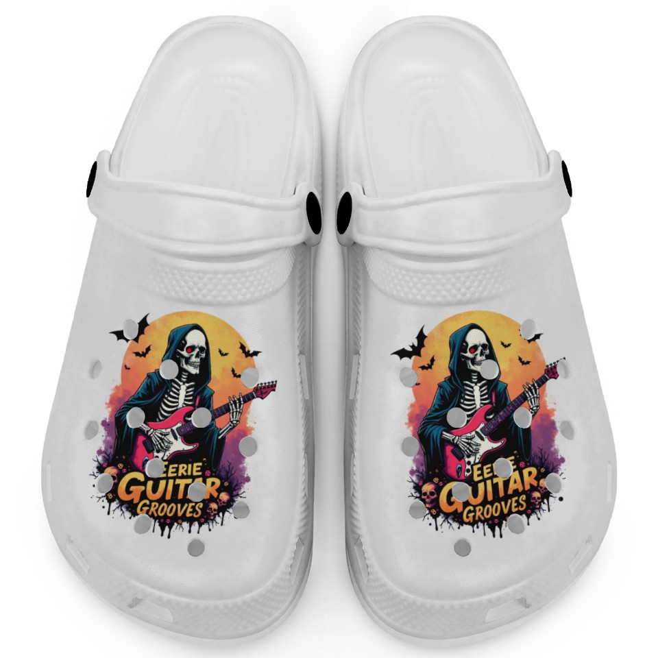 You're looking at the eye-catching product Celebrate Halloween with Cowboy Funny Skeleton Clogs For Kids WHITE belong theme Clogs at Printblur