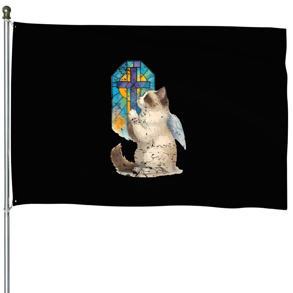 Shop for attractive Celestial Cat with Stained Glass Cross House Flags or see more House Flags products on https://printblur.com right now!