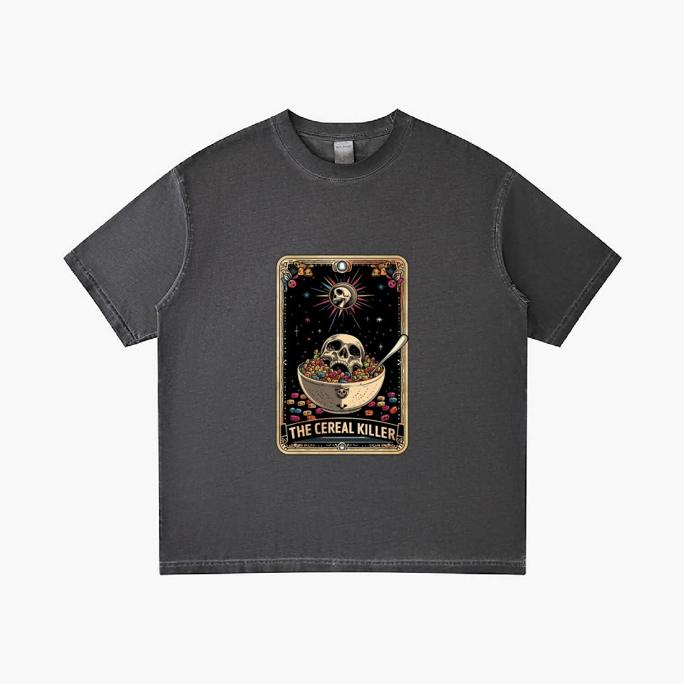 You are seeing a unique and impressive product Cereal Killer Tarot Card Horror Movies True Crime Gradient T Shirts For Men Washed Black belong theme Gradient T-Shirts at Printblur
