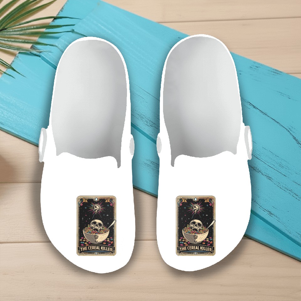 You are shopping for a stunning and trendy product Cereal Killer Tarot Card Horror Movies True Crime Slip On Clogs For Women WHITE belong theme Slip-On Clogs at Printblur