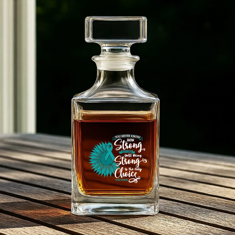 Buy stunning Cervical Cancer Awareness Month Teal Sunflower Whiskey Decanters or see more Whiskey Decanters products at Printblur right now to receive many amazing discounts!