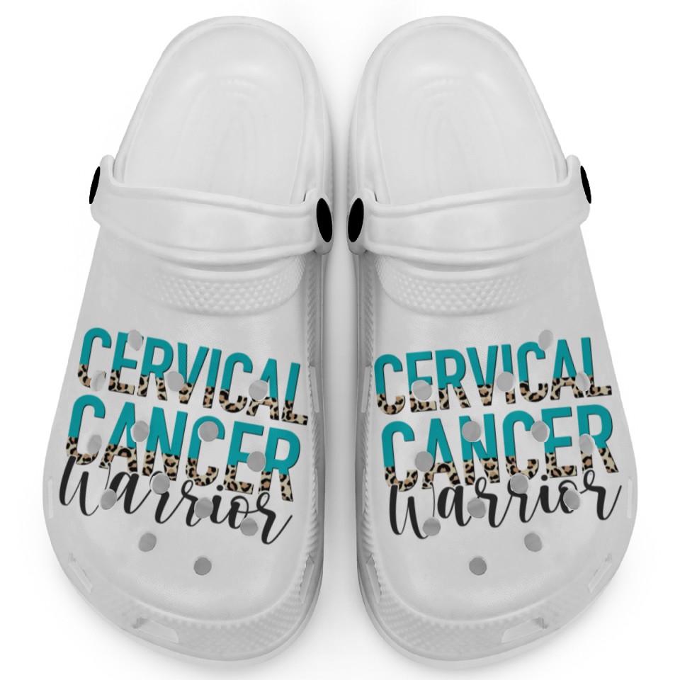 Buy eye-catching Cervical Cancer Awareness Month Warrior Teal White Clogs or see more Clogs products at Printblur shop now to explore many surprises from our shop!