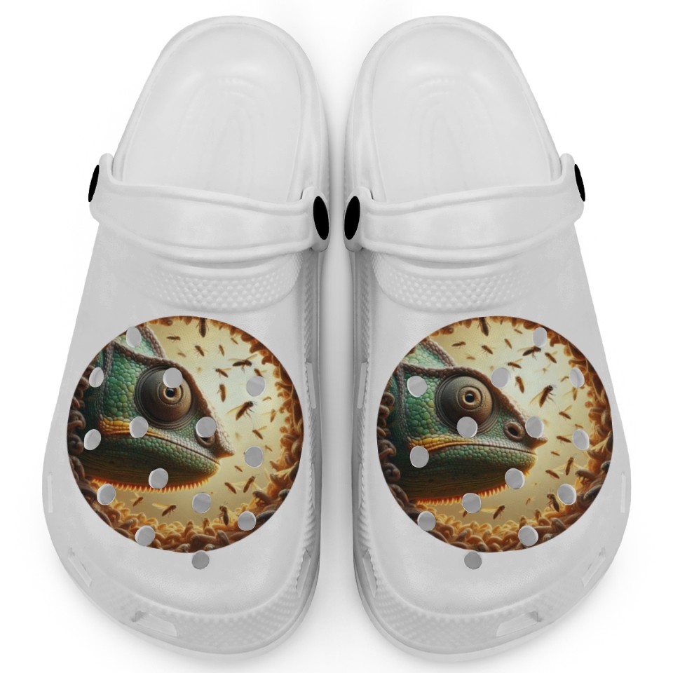 You're looking at the eye-catching product Chameleon head surrounded by bees Clogs For Kids WHITE belong theme Clogs at Printblur