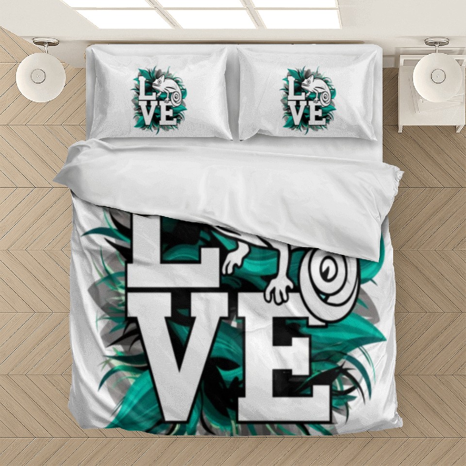 Shop for attractive Chameleon Lizard Love Green Teal Text Design Bedding Sets or see more Bedding Sets products on https://printblur.com right now!