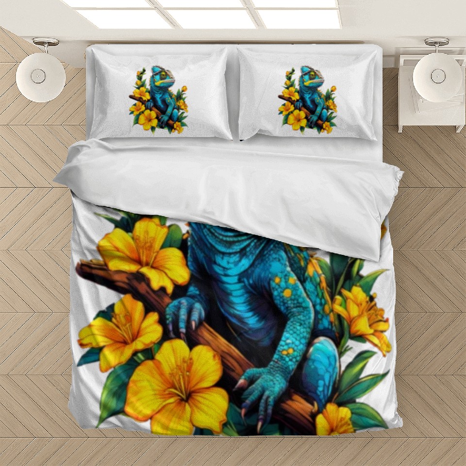 Buy eye-catching Chameleon on a Branch Surrounded by Flowers Bedding Sets or see more Bedding Sets products at Printblur shop now to explore many surprises from our shop!