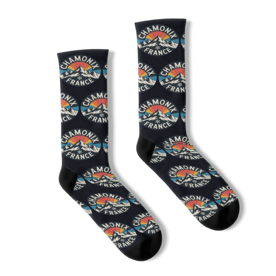 Buy eye-catching Chamonix Mountain Retro France Design Socks or see more Socks products at Printblur shop now to explore many surprises from our shop!