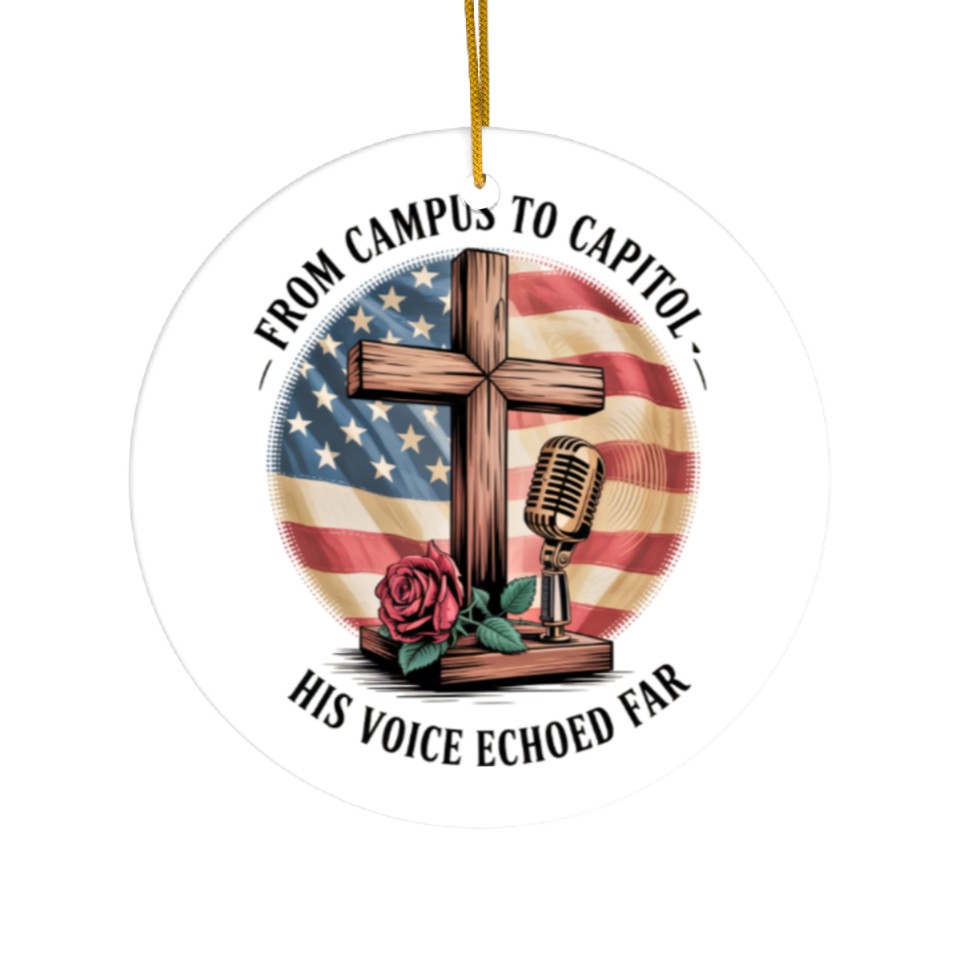 Buy eye-catching Charlie Kirk: Campus To Capitol Ceramic Ornaments or see more Ceramic Ornaments products at Printblur shop now to explore many surprises from our shop!