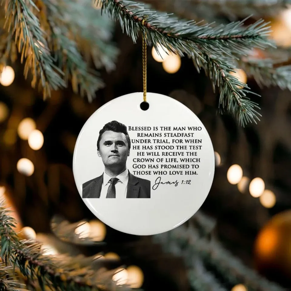 The product unique design you searched for is Charlie Kirk Memorial Ornament – James 1:12 Bible Verse Tribute Ceramic Keepsake For belong theme Ceramic Ornaments at Printblur