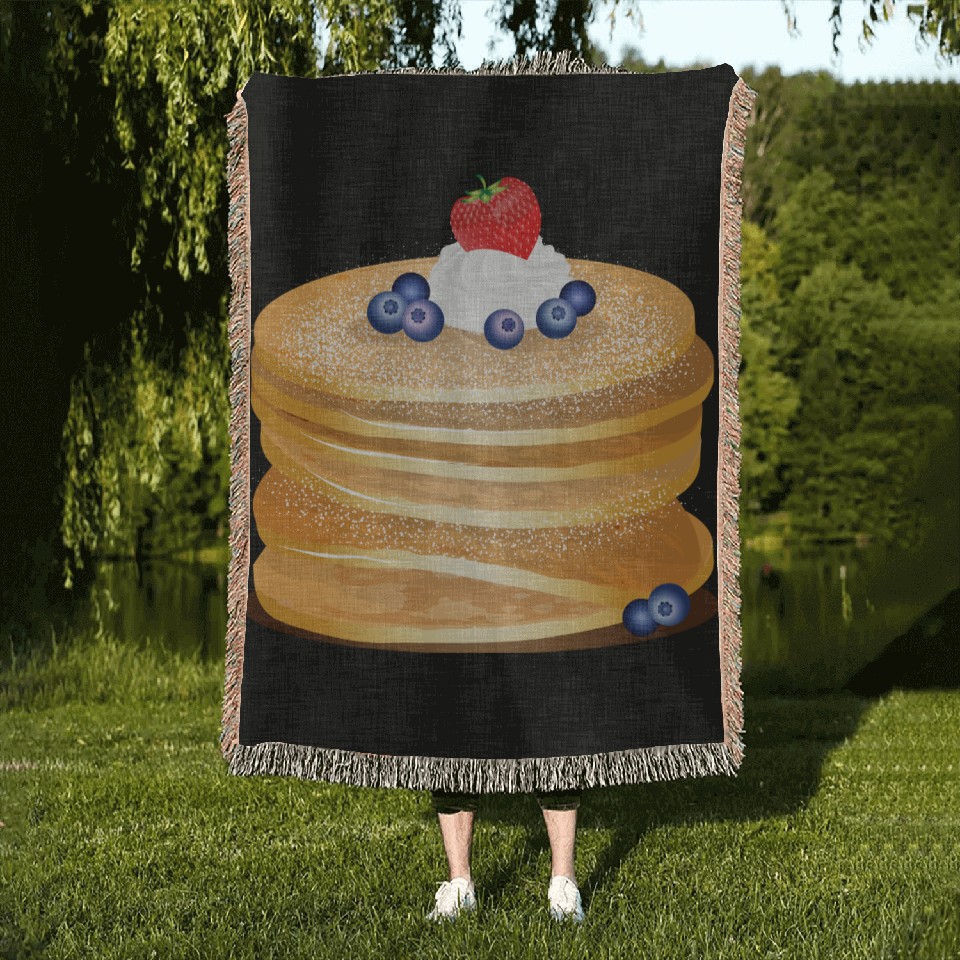 You are seeing a unique and impressive product Charming pancake motif with cream and berries Woven Blankets For Black belong theme Woven Blankets at Printblur