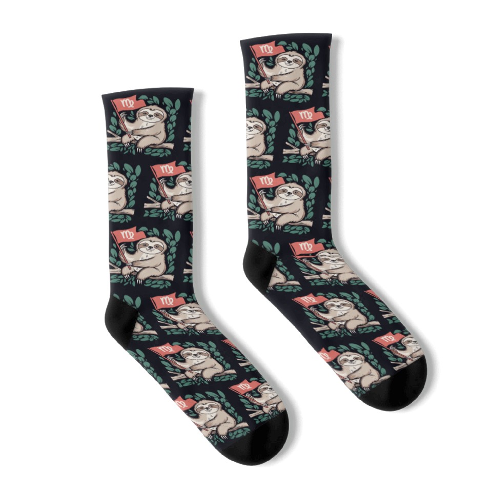 Buy eye-catching Charming Virgo Zodiac Sloth Embracing the Stars Socks or see more Socks products at Printblur shop now to explore many surprises from our shop!