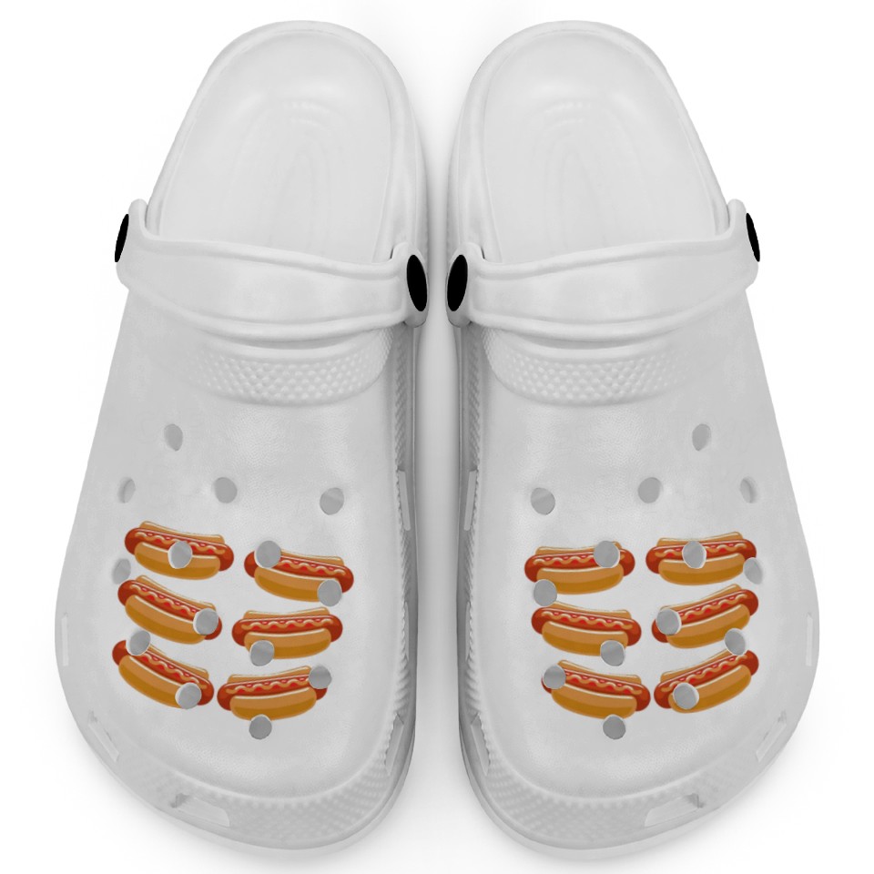 The item hot trend you're looking at is check out my 6 pack Hot dog funny gift hot dogs Clogs For Kids WHITE belong theme Clogs at Printblur