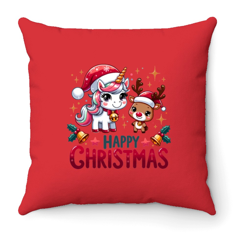 You are viewing an exclusive and elegant product Cheerful Unicorn & Reindeer - Merry Christmas Throw Pillows For Cover Only Red belong theme Throw Pillows at Printblur