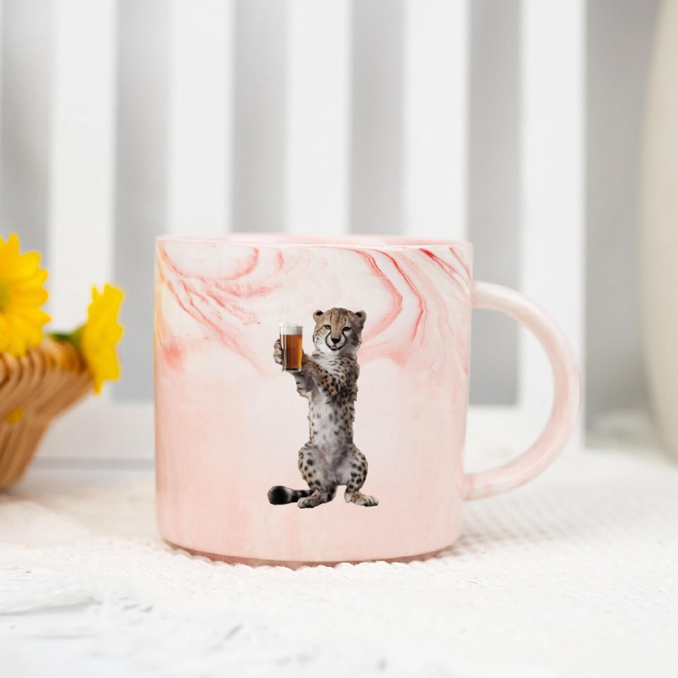 You are shopping for a stunning and trendy product Cheetah Drinking Beer Realistic Marble Mugs For Pink belong theme Marble Mugs at Printblur