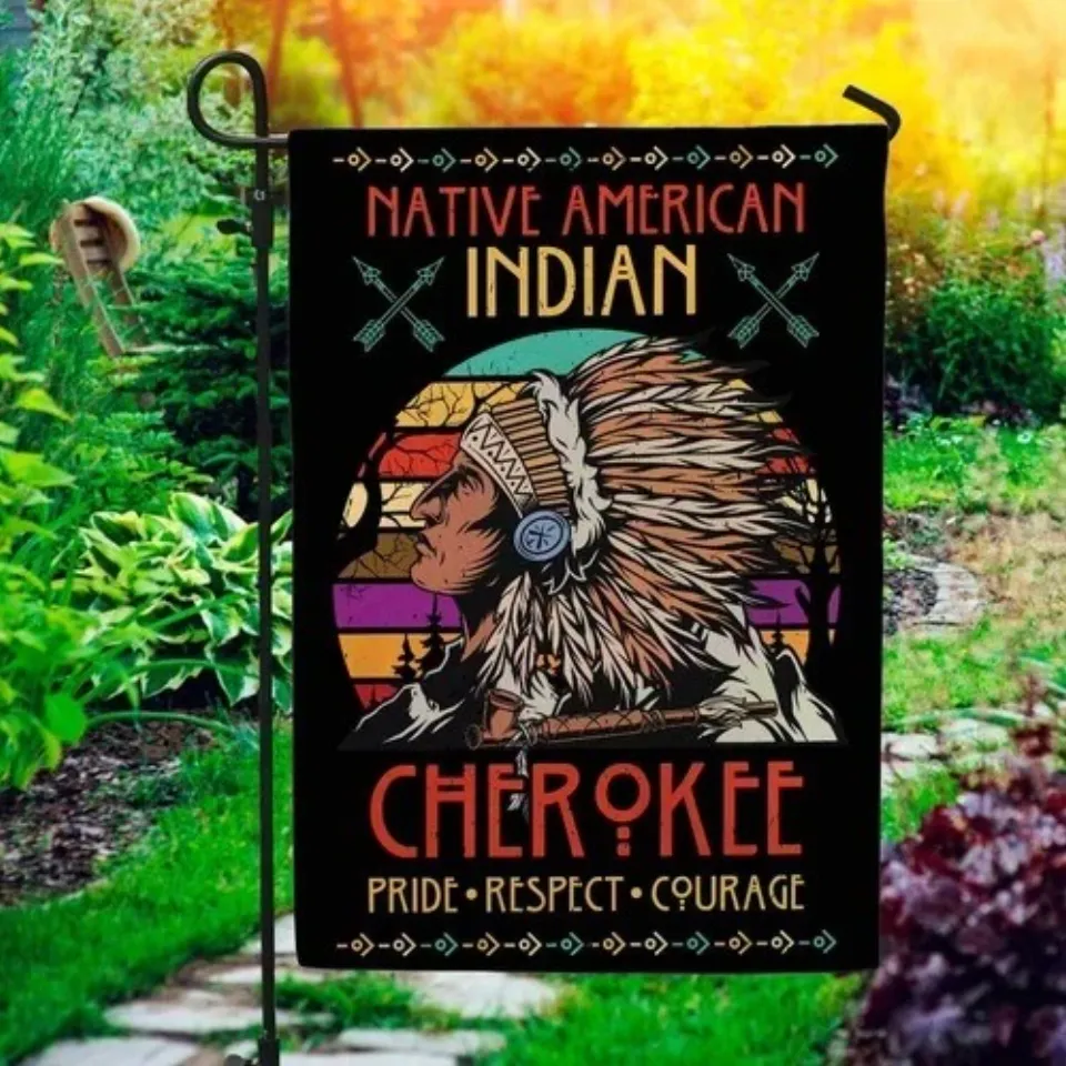 Shop for impressive Cherokee Pride Garden Flag with Native American Indian Design or see more Garden Flags products right now on Printblur to enjoy your happiness!