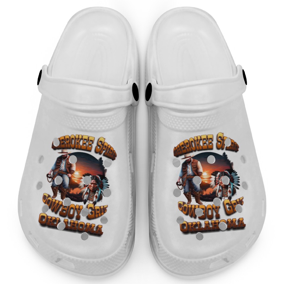 Shop for impressive Cherokee Spirit, Cowboy Grit: Oklahoma Clogs or see more Clogs products right now on Printblur to enjoy your happiness!