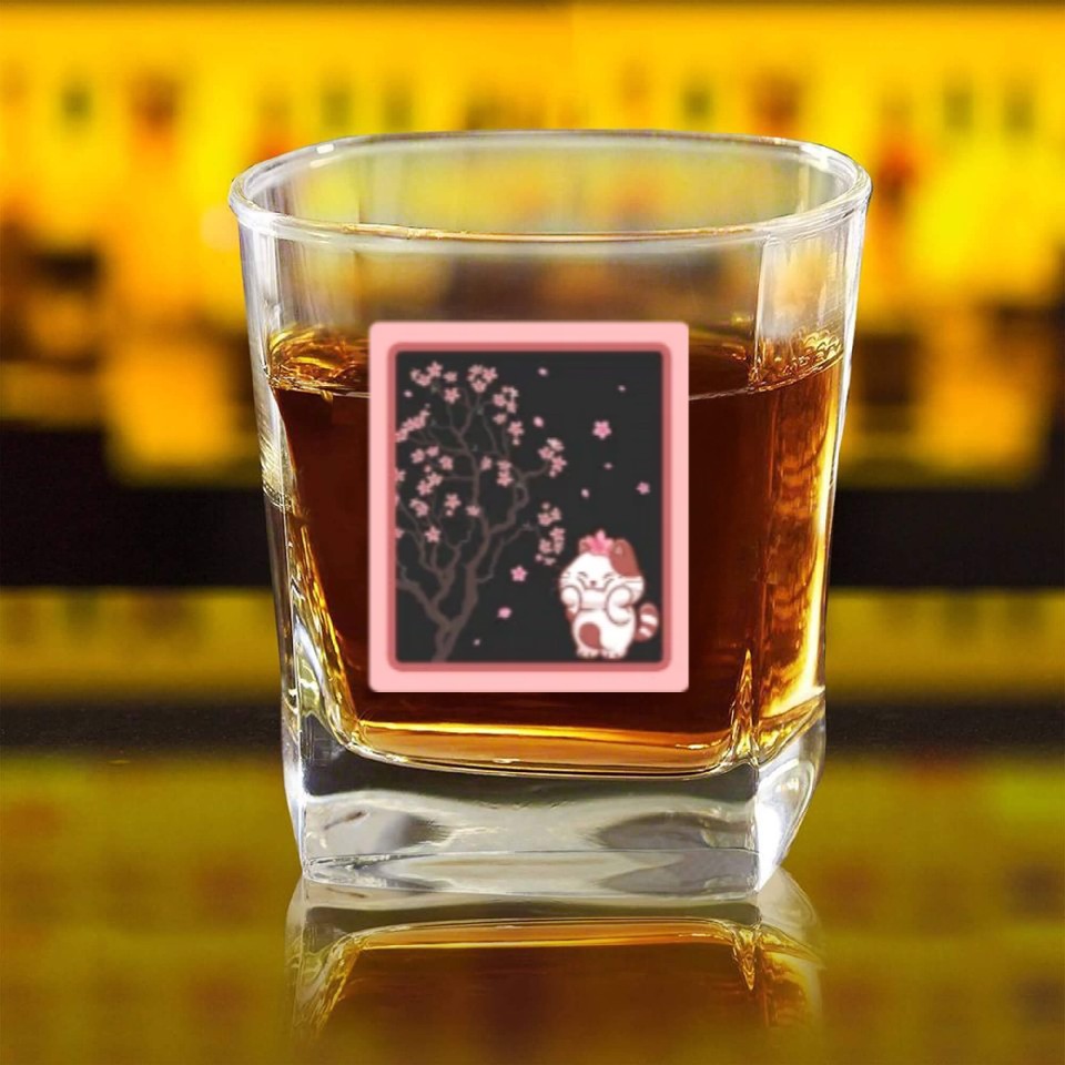 You're looking at the eye-catching product Cherry Blossom Square Whiskey Glasses, Kawaii Cat Cherry Blossom For belong theme Square Whiskey Glasses at Printblur