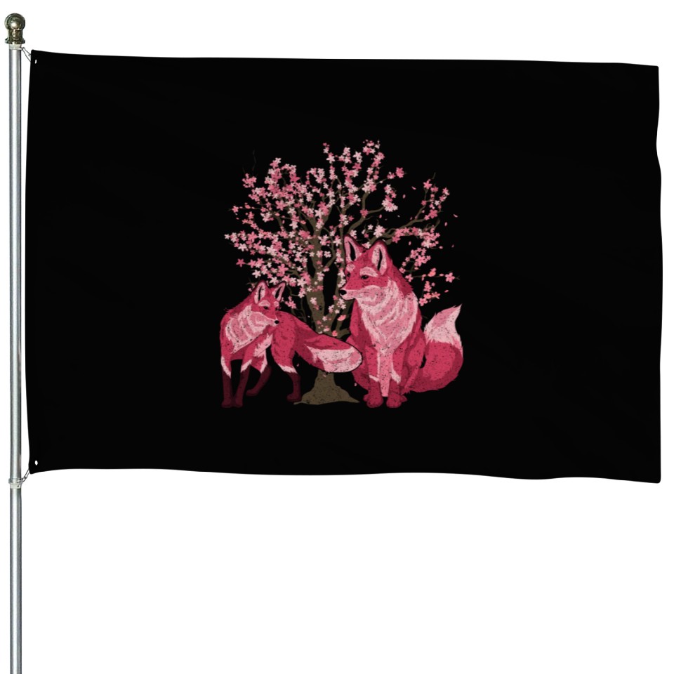 Buy eye-catching Cherry blossom tree forest animal gift sakura fox House Flags or see more House Flags products at Printblur shop now to explore many surprises from our shop!