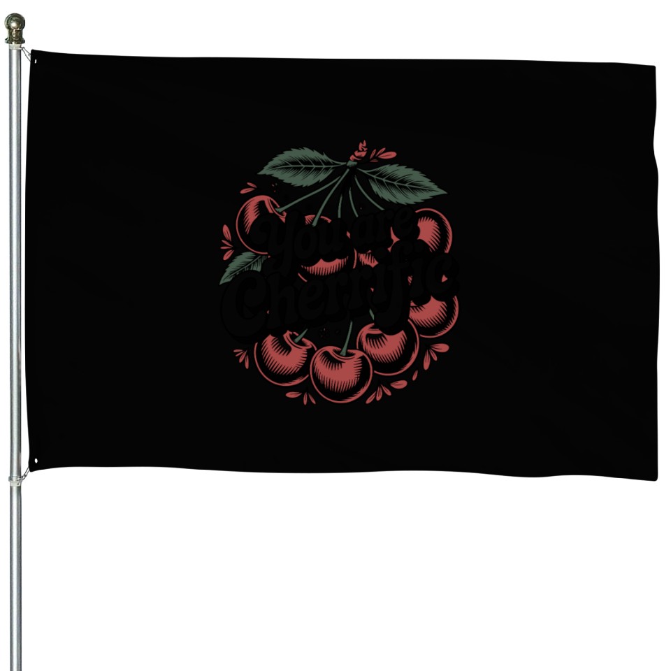 The item hot trend you're looking at is Cherry Boho You're Cherrific Vintage Vibe House Flags For Black belong theme House Flags at Printblur