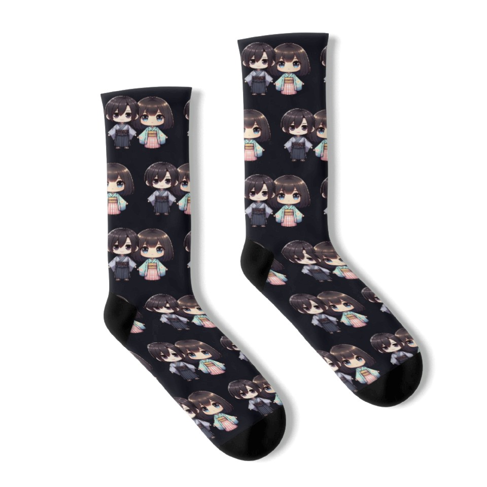 You're searching for a one-of-a-kind product Chibi Kawaii Traditional Kimono Duo Socks For Black belong theme Socks at Printblur