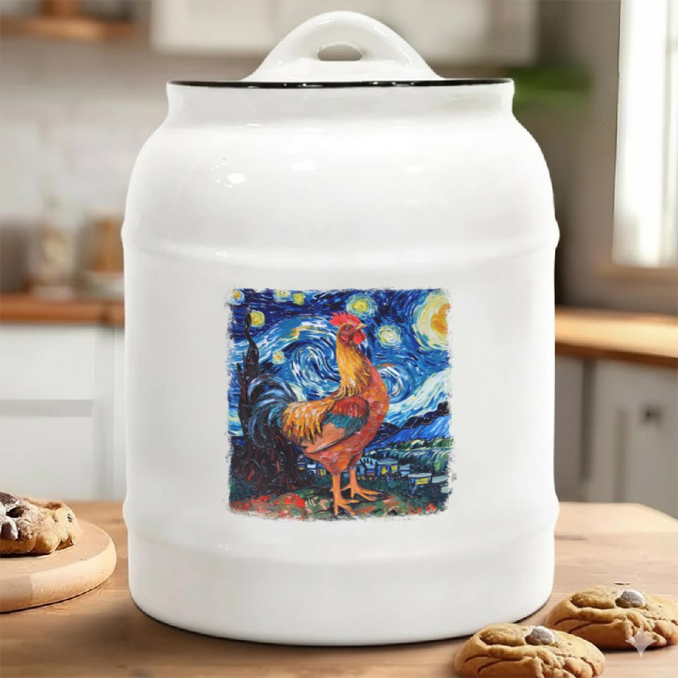 You're searching for a one-of-a-kind product Chicken Farm Farmer Farming Starry Night Painting Ceramic Cookie Jars For belong theme Ceramic Cookie Jars at Printblur