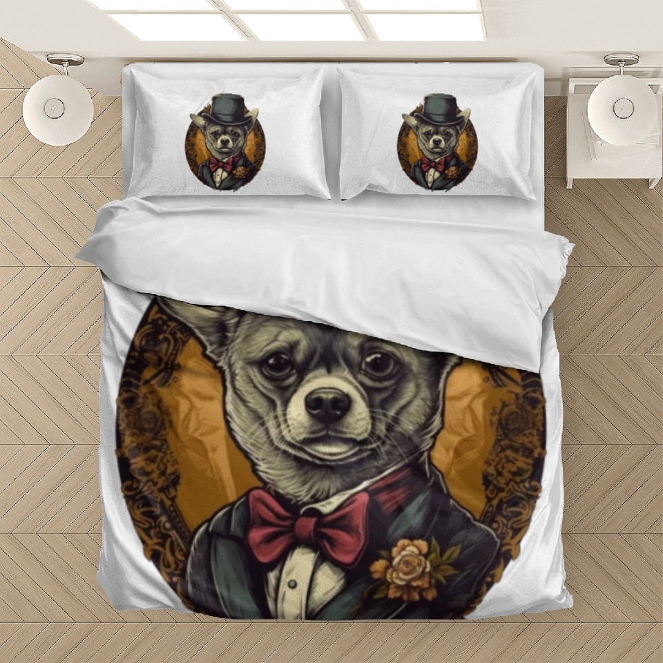 You are seeing a unique and impressive product Chihuahua - France Red Wine French Gentleman Funny Bedding Sets For WHITE belong theme Bedding Sets at Printblur