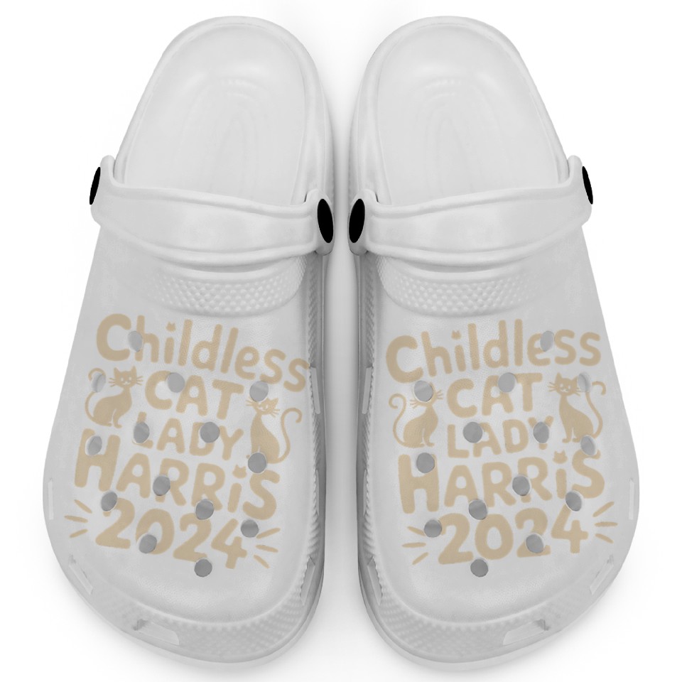 You are seeing a unique and impressive product Childless Cat lady Kamala Harris Clogs For Kids WHITE belong theme Clogs at Printblur