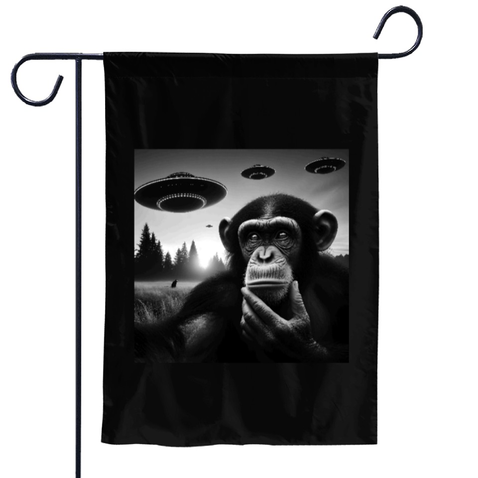 Shop for impressive Chimp Monkey Ape Funny Selfie with UFOs Weird Alie Garden Flags or see more Garden Flags products right now on Printblur to enjoy your happiness!