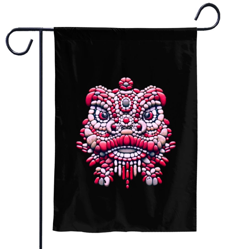 You're searching for a one-of-a-kind product Chinese New Year - Pink Peony Lion Dance Mask Garden Flags For Black belong theme Garden Flags at Printblur