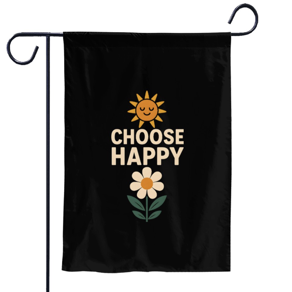 The product unique design you searched for is Choose Happy Retro Positivity Sun and Flower Garden Flags For Black belong theme Garden Flags at Printblur