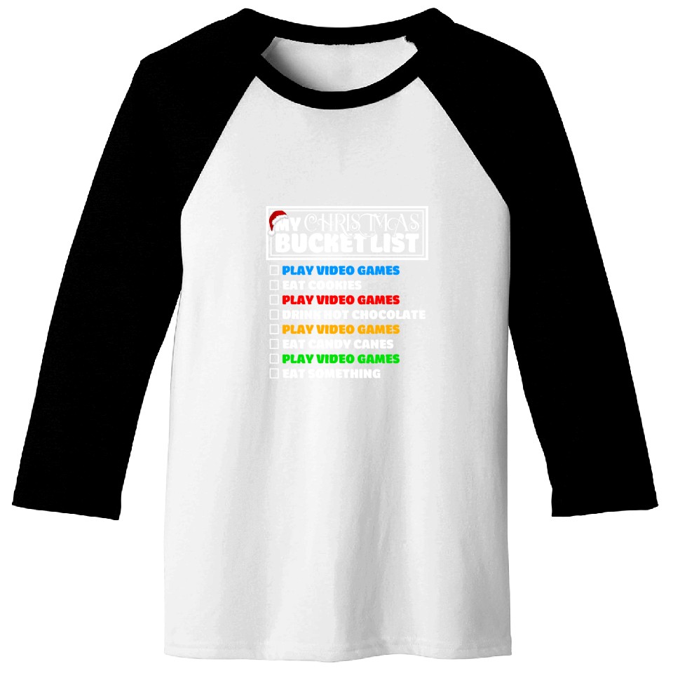 Shop for attractive Christmas Bucket List Video Games Xmas Gamer Baseball Tees or see more Baseball Tees products on https://printblur.com right now!
