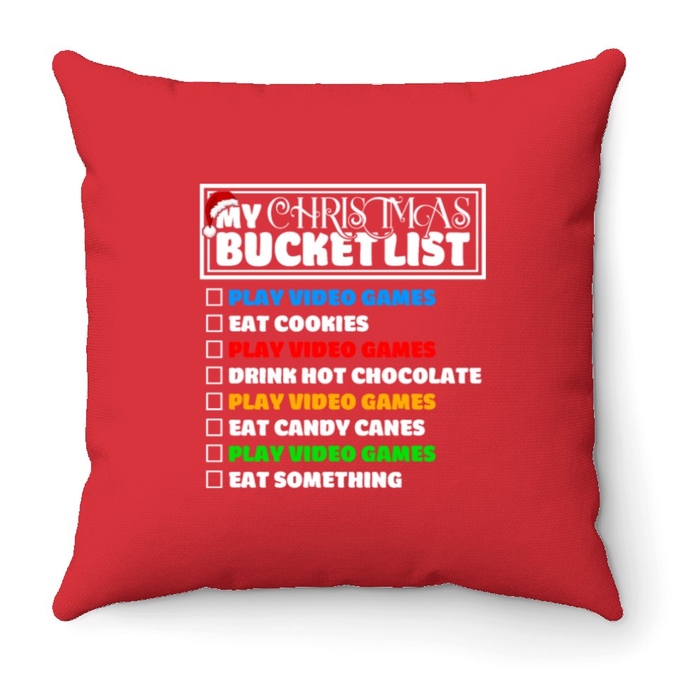 You are seeing a unique and impressive product Christmas Bucket List Video Games Xmas Gamer Throw Pillows For Cover Only Red belong theme Throw Pillows at Printblur
