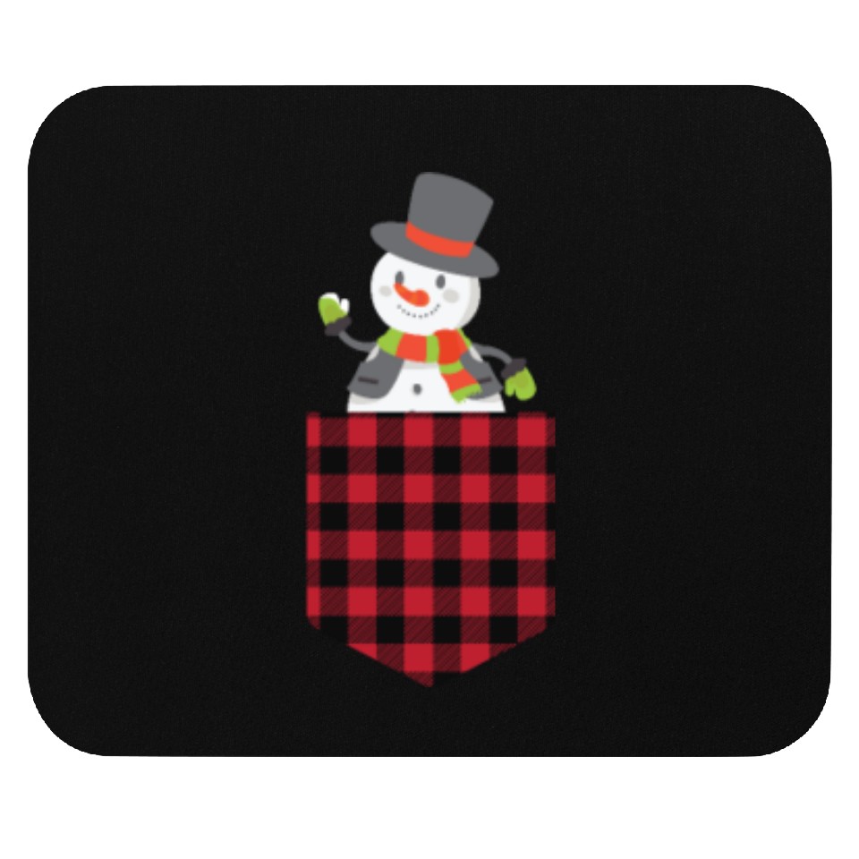 Christmas Cute Snowman In Buffalo Plaid Pocket Mouse Pads