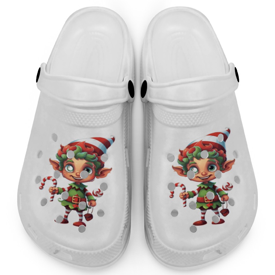 The item hot trend you're looking at is Christmas Elf Candy Cane X-Mas Pajamas Party Clogs For Kids WHITE belong theme Clogs at Printblur