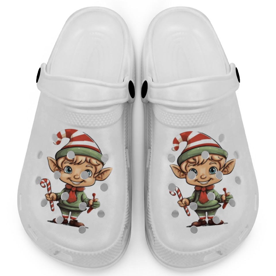 You are viewing an exclusive and elegant product Christmas Elf Candy Cane X-Mas Pajamas Party Clogs For Kids WHITE belong theme Clogs at Printblur