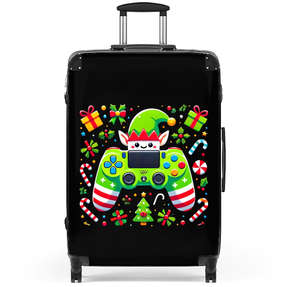 You're searching for a one-of-a-kind product Christmas Elf Themed Gaming Controller Fun Suitcases For Black belong theme Suitcases at Printblur