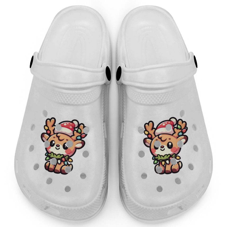 You are viewing an exclusive and elegant product Christmas Hat Christmas Fairy Lights Deer Clogs For Kids WHITE belong theme Clogs at Printblur