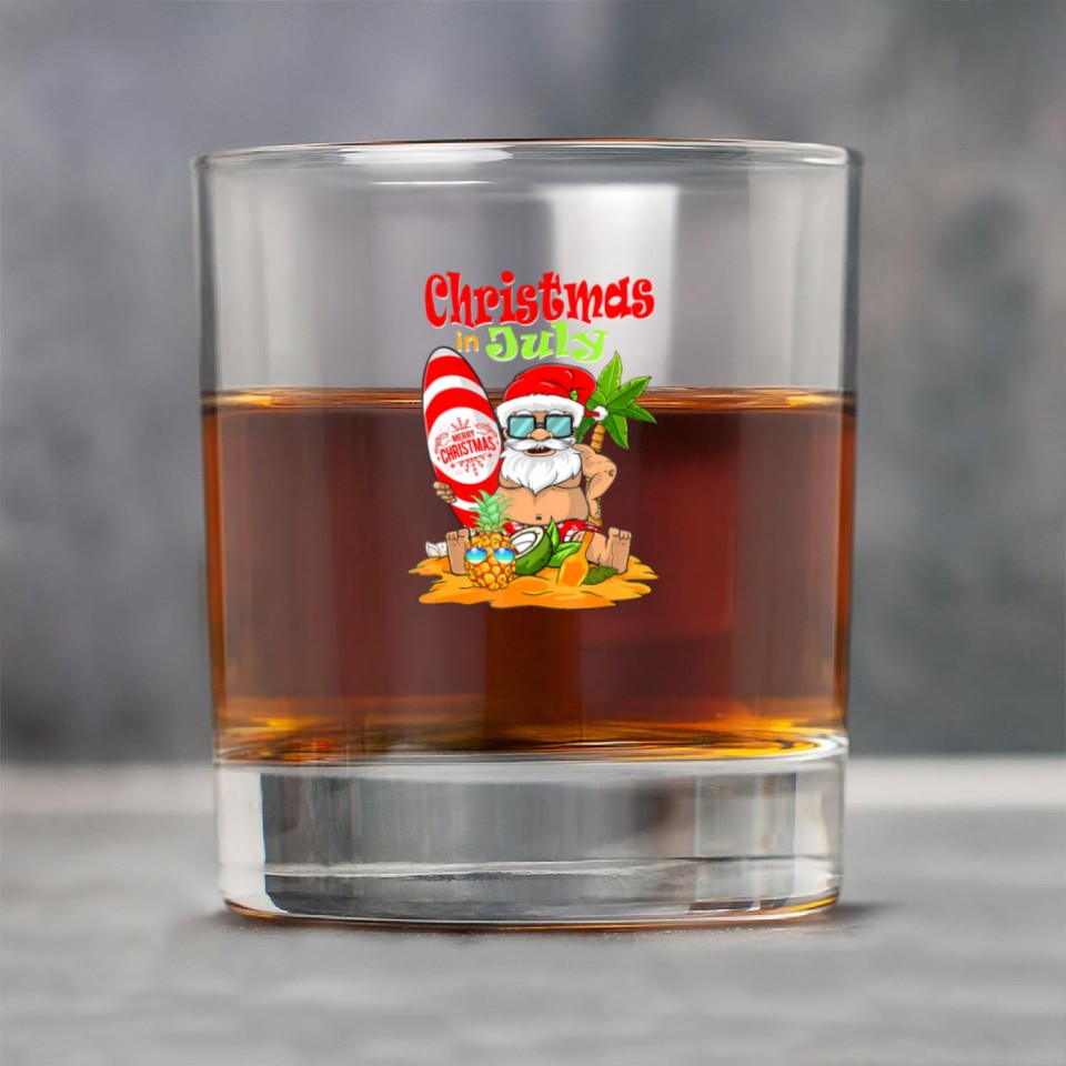 You are seeing a unique and impressive product Christmas In July Funny Santa Summer Beach Rock Glasses For belong theme Rock Glasses at Printblur