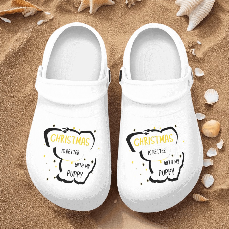 You're looking at the eye-catching product Christmas is Better with My Puppy Nurse Clogs For Men WHITE belong theme Nurse Clogs at Printblur