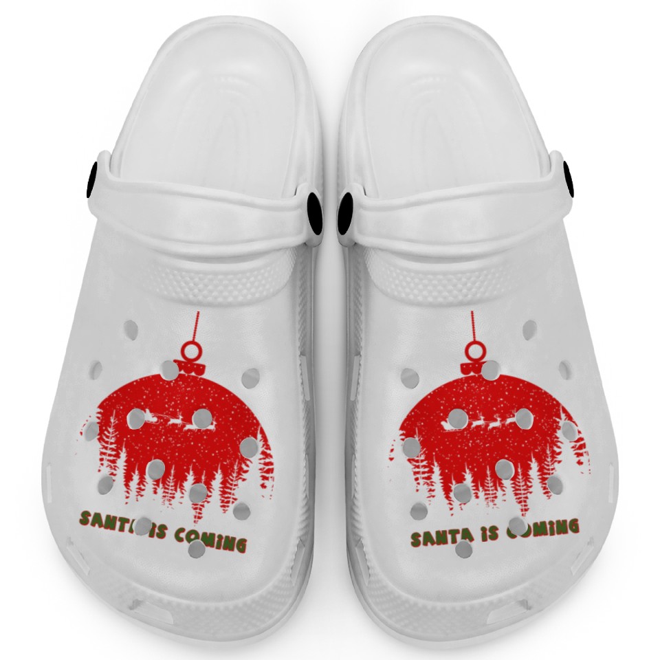 You're searching for a one-of-a-kind product Christmas Santa Is Coming Santa Candy Cane Throne Clogs For Kids WHITE belong theme Clogs at Printblur
