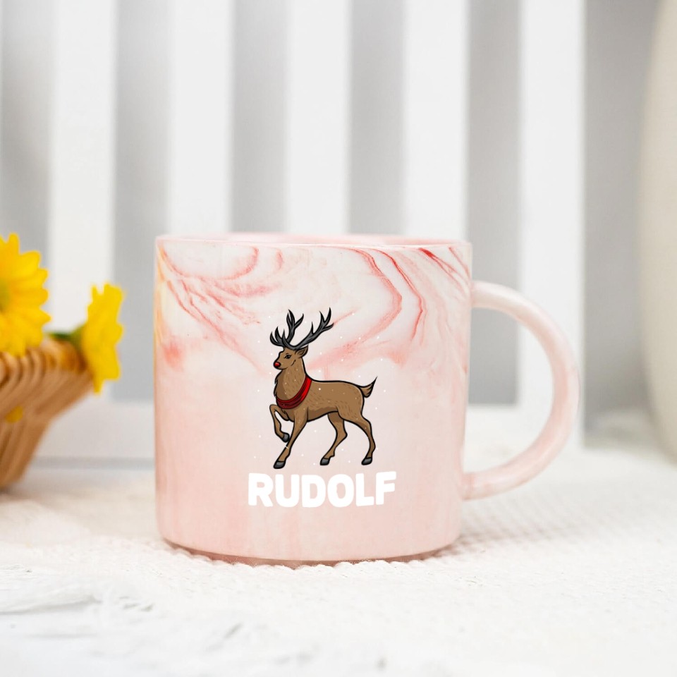 You're searching for a one-of-a-kind product Christmas Santa's Reindeer Lazy Costume Rudolph Marble Mugs For Pink belong theme Marble Mugs at Printblur