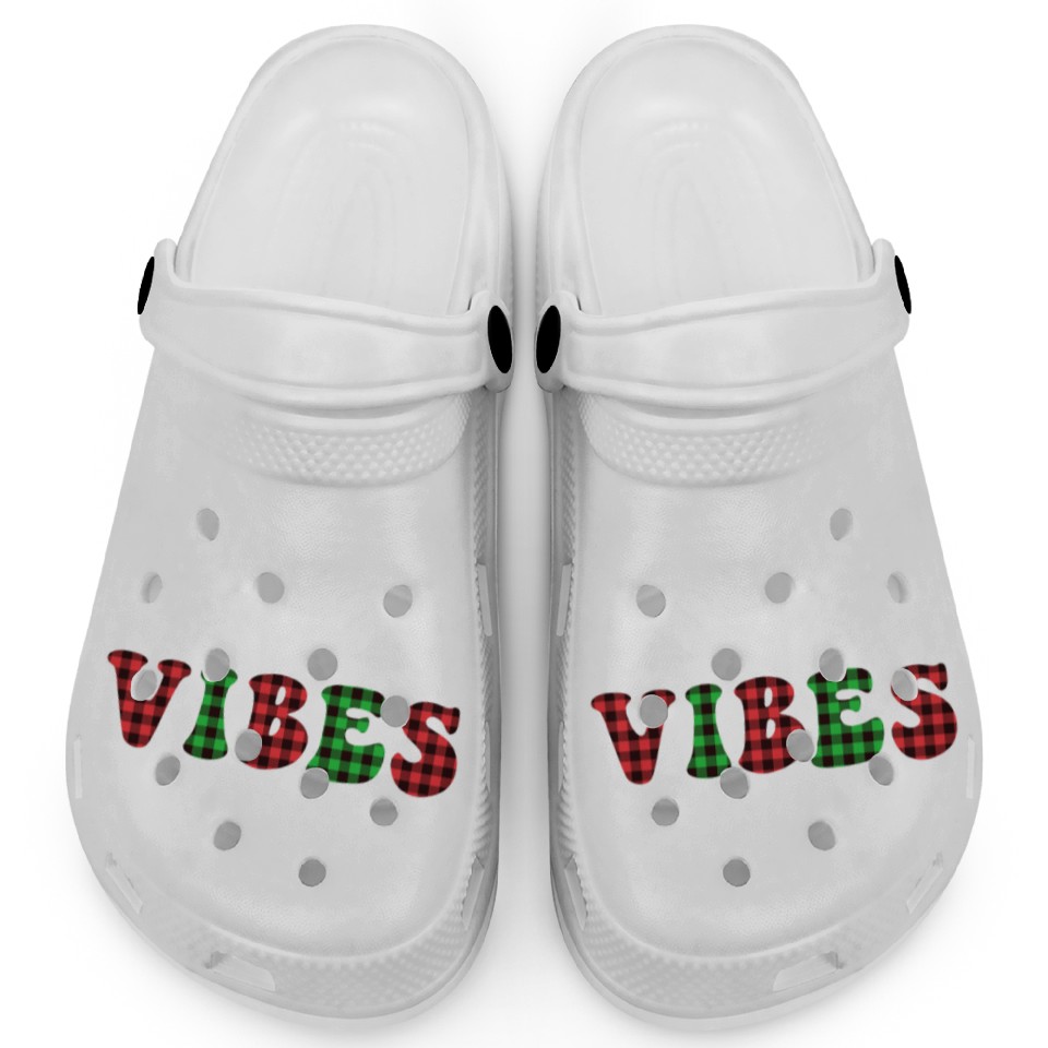 Christmas Vibes Buffalo Plaid Retro Christmas Clogs