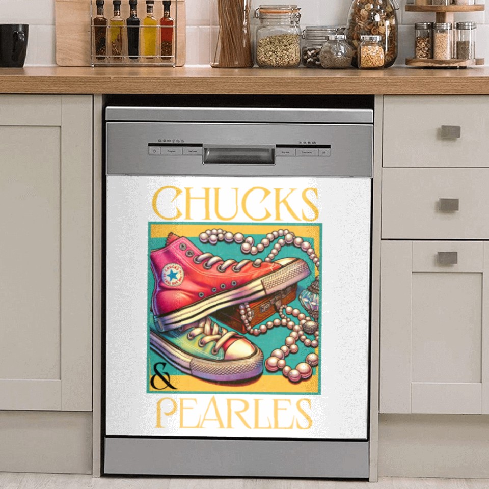 You're looking at the eye-catching product Chucks And Pearls I'M With Her Kamala Dish Washer Covers For WHITE belong theme Dish Washer Covers at Printblur